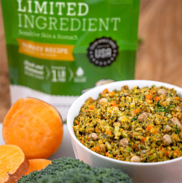 Most dogs love the taste of real food. However, if your dog doesn’t take to Limited Ingredient right away, try rehydrating the mixture with bone broth or low sodium chicken or beef stock broth instead of water to entice him or her.